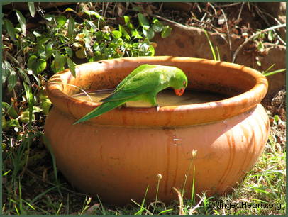 Before long, Lori decided it was time to inspect Monty's favourite spa and thirst quencher. A surprised Monty decided to let go of his initial territorial instincts and join his friend instead.